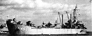 ![]() LST-802 unloading vehicles at Inchon, South Korea in 1950 | |