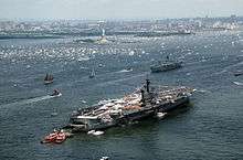 Setting sail in July 1986, Kennedy participated in the International Naval Review to help mark the Re-dedication of the Statue of Liberty. Kennedy served as the flagship for the armada before departing on her eleventh overseas deployment to the Mediterranean in August – highlighted by multiple Freedom of Navigation exercises in the Libya's Gulf of Sidra, and operations off of the coast of Lebanon as a response to increasing terrorist activities and U.S. citizens being taken hostage in Beirut. The ship returned to Norfolk, Virginia in March1987 and was dry-docked a second time for fifteen months for critical upgrades and major repairs.
