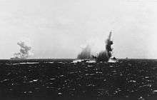 At 1452, O’Brien sighted smoke coming from Wasp. As a member of the aircraft carrier Hornet's ASW screen, she made an emergency turn to the right. At about 1454, while accelerating and swinging right, her lookouts spotted a torpedo two points forward of the port beam, 1,000 yards (910 m) away. This torpedo then missed O'Brien close astern, but while her crew's attention was concentrated on it, another torpedo hit her port bow.