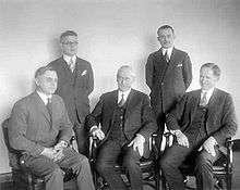 Stephen Mather (center) and his staff, 1927 or 1928