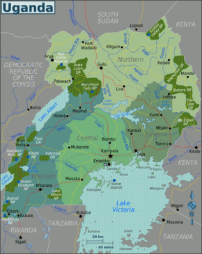 ![]() Location of Uganda (dark green) – in Africa (light blue & dark grey) |