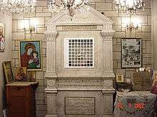 Saint Mary Church of the Holy Belt (Arabic: كنيسة أم الزنار; Um az-Zinnar) is a historical Syriac Orthodox Church in Homs, Syria. The church is built over an underground church dating back to 50 AD. It is the seat of the Syriac Orthodox archbishopric. The church contains a venerated relic that is supposed to be a section of the belt of Mary mother of Jesus.[1] The church was damaged during confrontations between the armed opposition and the security forces in the 2011–2012 Syrian unrest.[2]