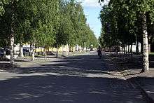 In 1874 the town improved the plans for its structure after it became a government requirement. Umeå had already started making these changes[10] when on 25 June 1888, a fire devastated the eastern parts of Umeå and at least 2,300 of the 3,000 inhabitants became homeless. In the restoration following the fire, silver birch trees were planted along wide avenues to prevent future fires from spreading.[11] For this reason Umeå is sometimes known as "Björkarnas Stad", the "City of Birches".[12] and the name of the Umeå ice-hockey team, Björklöven, means "The Birch Leaves".