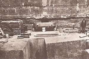 The pyramid shaft was examined more closely in 1904–1905 by the Italian archaeologist Alessandro Barsanti.[4] Gaston Maspero, then director-general of the Supreme Council of Antiquities of Egypt, visited Barsanti's excavations and was struck by the monumental size of the construction. He writes:[4]