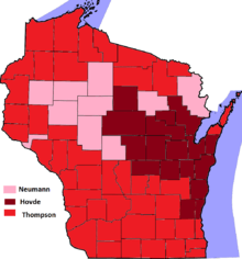 Six candidates declared for the seat, although two later withdrew. The contest turned out to be a four-way fight and although a large majority of Republican primary voters consistently expressed a preference for a nominee "more conservative" than Tommy Thompson, Eric Hovde and Mark Neumann split the conservative vote and Thompson narrowly prevailed with a plurality of the vote.[17]