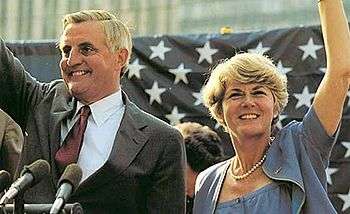 A very significant political move during this election: the Democratic Party nominated Representative Geraldine Ferraro to run with Mondale as Vice-President. Ferraro is the first female candidate to receive such a nomination in United States history. She said in an interview at the 1984 Democratic National Convention that this action "opened a door which will never be closed again,"[5] speaking to the role of women in politics.