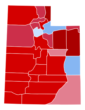 | Utah | 78.7% | 111,273 | 18.6% | 26,276 | 2.8% | 3,899 | 141,448 |