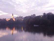 The university college underwent significant expansion in the 1920s when it moved from the centre of Nottingham to a large campus on the city's outskirts. The new campus, called University Park, was completed in 1928, and financed by an endowment fund, public contributions, and the generosity of Sir Jesse Boot (later Lord Trent) who presented 35 acres (14 ha) to the City of Nottingham in 1921.[18] Boot and his fellow benefactors sought to establish an "elite seat of learning" committed to widening participation,[19] and hoped that the move would solve the problems facing University College Nottingham, in its restricted building on Shakespeare Street. Boot stipulated that whilst part of the Highfields site, lying southwest of the city, should be devoted to the University College, the rest should provide a place of recreation for the residents of the city, and by the end of the decade the landscaping of the lake and public park adjoining University Boulevard was completed. The original University College building on Shakespeare Street in central Nottingham (known as the Arkwright Building), now forms part of Nottingham Trent University's 'City campus'.[20]