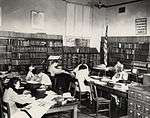 The original library of the University of Houston was established in 1927 when the school was known as Houston Junior College.[1] With 1,988 volumes, the library was housed as a section of the San Jacinto High School library, where the college shared building space. Ruth Wikoff was the school's first professional librarian. At the request of Wikoff, President Edison Oberholtzer relocated the library to its own space by converting the high school's music room.