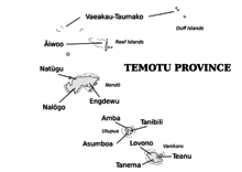 The Temotu languages, named after Temotu Province of the Solomon Islands, are a branch of Oceanic languages proposed in Ross & Næss 2007 for the Reefs – Santa Cruz languages. These languages had previously been considered Papuan, but Ross & Næss established that the closest relatives were the Utupua–Vanikoro languages, previously thought to be Central–Eastern Oceanic.[2]