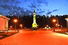 The V-2 Missile launch site, Blizna is the site of the World War II German V-2 missile firing range.[note 1] Today there is a small museum located in the Park Historyczny Blizna (Historical Park) in Blizna, Poland.[4] After the RAF strategic bombing of the V-2 rocket launch site in Peenemünde, Germany, in August 1943, some of the test and launch facilities were relocated to Blizna, Poland, in November 1943.[5][6] The first of 139 V-2 missile launches was carried out from the Blizna launch site on 5 November 1943.[7]