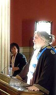 NASA conferred their Public Service Medal to Vangelis in 2003. The award is the highest honour the space agency presents to an individual not involved with the American government.[88] Five years later, in 2008, the board of the National and Kapodistrian University of Athens voted to make Vangelis an Honorary Doctor, making him Professor Emeritus at their Faculty of Primary Education.[89] In June 2008, the American Hellenic Institute honoured Vangelis with an AHI Hellenic Heritage Achievement Award for his "exceptional artistic achievements" as a pioneer in electronic music and for his lifelong dedication to the promotion of Hellenism through the arts.[90] On 16 September 2013, he received the honour of appearing on the Greek 80 cent postage stamp, as part of a series of six distinguished living personalities of the Greek Diaspora.[91]