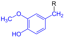In organic chemistry, the vanillyl group (also known as vanilloyl) is a functional group. Compounds containing a vanillyl group are called vanilloids, and include vanillin, vanillic acid, capsaicin, vanillylmandelic acid, etc.