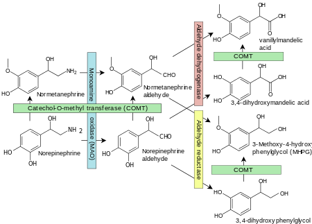 Vanillylmandelic acid (VMA) is a chemical intermediate in the synthesis of artificial vanilla flavorings[1] and is an end-stage metabolite of the catecholamines, epinephrine, and norepinephrine. It is produced via intermediary metabolites.