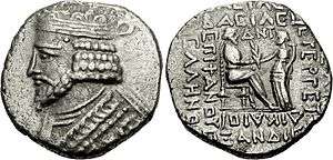 Vardanes I of Parthia (Persian: وردان يکم, flourished 1st century) was a Prince of Iranian and Greek ancestry. He ruled the Parthian Empire as King from about 40 until 45 CE.[1] He succeeded his father Artabanus III, but had to continually fight against his brother Gotarzes II, a rival claimant to the throne.