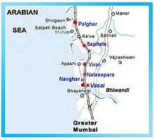Vasai-Virar is a city and tehsil (subdistrict) in Maharashtra state in western India, comprising the most populated part of Palghar district. It is a suburb of Mumbai. According to the 2011 census, it is the fifth largest city in Maharashtra.[3] It is located in Palghar district, 50 km north of Mumbai. The city is located on the north bank of Vasai Creek, part of the estuary of the Ulhas River. Vasai-Virar City Municipal Corporation (VVMC) covers the tehsil.