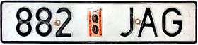 - For Agricultural vehicles, the plate consists of four numbers and two letters (e.g. 1234 AB), and is colored black letters on white background.