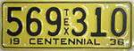 1936 Dark blue embossed lettering and rims on lemon yellow base Centennial 123-456
