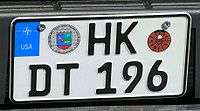 When the US forces began using this system, they chose the first two-letter codes not yet used in the German registration system, namely AD (standard size) and AF (small size). After some time they realised that AF could be easily interpreted as Armed Forces or Air Force, defeating the purpose of using German-style plates. So they discontinued issuing plates with "AF" and began using "HK" instead. For official vehicles the code "IF" is used with standard-size plates. By law the vehicles must carry the "USA" sticker since they are registered by a non-European Union country. But in this special matter this law is not enforced in Germany with US Army vehicles. When travelling outside Germany, US military laws required that USA sticker be displayed on the rear of the car. Since the change to local German plates (see below) this rule is no longer valid.