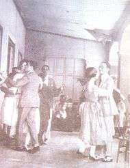 In Caracas, the term merengue rucaneao designated a way of dancing with couples holding and often featuring exaggerated hip movements (which added to the craze and subsequent controversy). Dances were paid affairs, with popular prices being “a locha” (12.5 cents) or “a medio” (25 cents) in dance halls known then as mabiles. Live accompaniment consisted of four solo instruments: trumpet, trombone, saxophone and clarinet and rhythm instruments such as the cuatro, bass and percussion (which, depending on the size of the ensemble, could be as simple as a scraper, or incorporate maracas and even a snare drum) . Travelling groups known as cañoneros walked around the neighborhoods staging impromptu performances for tips. The name "cañoneros" comes from their marketing approach, which included firing a carbide charge from a blank cannon made of a thick, hollowed-out bamboo cane.