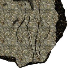 At the same place many engravings of animals, human beings and abstract signs on slate were found. The depictions of human beings were much stylized. Most often women were depicted, always in profile without a head. The Montastruc decorated stone (Palart 518) in the British Museum has similar stylization.