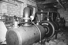 A compound steam engine unit is a type of steam engine where steam is expanded in two or more stages.[1][2] A typical arrangement for a compound engine is that the steam is first expanded in a high-pressure (HP) cylinder, then having given up heat and losing pressure, it exhausts directly into one or more larger-volume low-pressure (LP) cylinders. Multiple-expansion engines employ additional cylinders, of progressively lower pressure, to extract further energy from the steam.[3]
