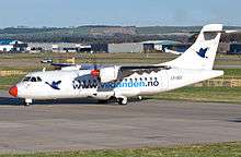 The airline was based at Skien Airport, Geiteryggen. It provides twenty weekly trips to Bergen and weekly trips to Stavanger.[1][2] In 2009, 50,000 people traveled with Vildanden.[3] The company has one ATR 42, which seats 48 passengers and is operated by Danish Air Transport, and one Jetstream 32, which seats 19 and is operated by Helitrans.[4][5] The airline used Sandefjord Airport, Torp as its reserve airport in case of bad weather.[6] The airline is named after the play The Wild Duck (Norwegian: Vildanden) written by Henrik Ibsen, who was born in Skien. The slogan "The shortest path between Ibsen and Grieg" is a pun on the Bergen composer Edvard Grieg's and Ibsen's names. The largest owner is Magne Forland, who owns 70%.[7]
