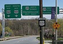 | 149.61 | 240.77 | interchange; Lynchburg Expressway exit 3; northern terminus of US 221 | |||