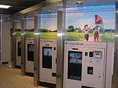 All ticket machines not in terminals have a validation machine attached to their sides. For many ticketing machines inside the terminal, the validation machine is separated from the ticket machines because many of the ticket machines are side by side.