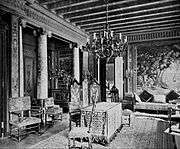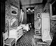 The Waldorf State Apartments, consisting of nine suites, were located on the second floor. The apartments, including the Henry IV Drawing Room, featured 16th and 17th century French and Italian antiques which Boldt and his wife had brought back from Europe.[71] Francois V Bedroom was a reproduction of the room at the Palais de Fontainebleau, and over the years was occupied by the likes of Li Hung-Chang of China, Chowfa Maha Rajiravuth, Prince of Siam, and Albert of Saxe-Coburg.[72] The apartments had their own music room and a banquet hall to seat 20, with a handsome china collection including 48 Sevres plates with European portraits.[73] There were about 6,000 lights in the hotel, with as many as 1,000 were small candelabra lamps mounted in specially designed fixtures.[74] The electric fixtures were all furnished by the Archer & Pancoast Manufacturing Company, of New York, while the contract for the general installation work was carried out by the Edison Electric Illuminating Company, of New York, the actual work of wiring being done by the Eastern District of the General Electric Company. The building was wired throughout on the system of the Interior Conduit and Insulation Company.[74]