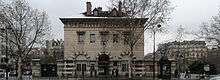 The architect Claude Nicolas Ledoux designed its 62 toll barriers in a neo-classic or even classical style.[2] The architectural value of these buildings, "dens of the Tax Department metamorphosed into palaces with columns" according to Louis-Sébastien Mercier, highlighted the oppression which the wall represented for Parisians. The wall was bordered by a boulevard outside and a chemin de ronde (a raised protected walkway) inside, except between the barrière d'Italie (now the Place d'Italie) and the barrière d’Enfer (now the Place Denfert-Rochereau) where the Boulevards of Gobelins, Saint-Jacques and d'Enfer replaced the chemin de ronde inside the wall.
