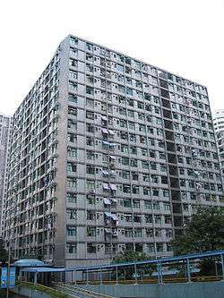 Wang Tau Hom Estate (Chinese: 橫頭磡邨) is a public housing estate in Wang Tau Hom, Wong Tai Sin, Kowloon, Hong Kong, along Lung Cheung Road and next to Lok Fu. The estate was originally built in 1962 with a total of 25 blocks, but it was redeveloped between 1982 and 1983. It now consists of 18 blocks of three types, namely, Double H, Harmony 3 and Linear L with Linear 1 and Linear 3, providing a total of 5,900 domestic flats.[1] There were originally had six more blocks, but these were allocated to Lok Fu Estate because they were near MTR Lok Fu Station after its 1991 construction.[2]