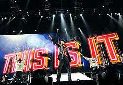Since March 2009, Jackson was preparing to perform "Wanna Be Startin' Somethin'" during his This Is It concert series from 2009 to 2010.[27] During rehearsals for the This Is It concerts, Jackson's performance of "Wanna Be Startin' Somethin'" contained an a cappella snippet of "Speechless", from Jackson's studio album Invincible (2001). Following Jackson's death in June of the same year, video footage of Jackson rehearsing the song was featured as the opening song in the 2009 concert documentary, Michael Jackson's This Is It.[28]