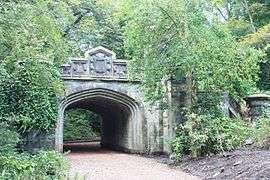 It was the first garden cemetery in Edinburgh, allowing the simplistic original title of The Edinburgh Cemetery,[3] and provided a model for several other Scottish cemeteries. In its own right it was broadly based on ideas first introduced at Kensal Green Cemetery in London. Designed elements include a neo-Tudor line of catacombs. Their length was doubled in 1862 by architect John Dick Peddie.[4] The chapel that once stood on top of the catacombs was removed in the 1980s.