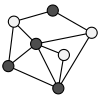 The figure on the right shows a weak 2-coloring of a graph. Each dark vertex (color 1) is adjacent to at least one light vertex (color 2) and vice versa.