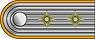Generals' shoulderboards were constructed similarly to those of field-grade officers, but comprised a length of silver Russia braid between two braided cords of gold bullion or Celleon. Since the resulting combination was wider, generals' boards were plaited in four 'loops' rather than five. Their buttons were gilt, and rank was indicated by zero to three silver pips, or crossed batons in the case of field marshals. The underlay was scarlet, except (from 1944) for generals of staff corps, who were instructed to wear Waffenfarbe instead.