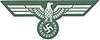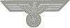 The Reichswehr's visual acknowledgement of the new National Socialist reality came on 17 February 1934, when the Defense Ministry[1] ordered the Nazi Party eagle-and-swastika, now Germany's National Emblem, to be worn on uniform blouses and headgear effective 1 May. The design adopted, in silver for the Reichsheer (army) and in gold for the Reichsmarine (navy), was a stylized eagle with outstretched, beveled wings clutching a wreathed mobile Hakenkreuz, later to be called the Wehrmachtsadler ("armed forces eagle").[2] On tunics this took the form of a cloth patch about 9 cm (3⅝") wide worn on the right breast, above the pocket. For enlisted uniforms it was jacquard-woven ("BeVo") or sometimes machine-embroidered in silver-grey rayon, for officers machine- or hand-embroidered in white silk or bright aluminum wire, and for generals hand-embroidered in gold bullion.[3] The backing was "badge-cloth" (Abzeichentuch), a close-woven velvetish fabric; this was originally Reichsheer grey, but in late 1935 the renamed Heer changed its Abzeichentuch color to a dark blue-green called flaschengrün (bottle-green).
