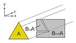 - Generate a list of "inbound" intersections – the intersections where the vector from the intersection to the subsequent vertex of subject polygon B begins inside the clipping region.
