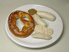 Weißwürste mit Brezeln und süßem Senf (white sausages with Pretzels and sweet mustard)
