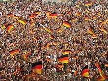 As hosts of the 1974 World Cup, they won their second World Cup, defeating the Netherlands 2–1 in the final in Munich.[27] Two matches in the 1974 World Cup stood out for West Germany. The first group stage saw a politically charged match as West Germany played a game against East Germany. The East Germans won 1–0.[28] The West Germans advanced to the final against the Johan Cruijff-led Dutch team and their brand of "Total Football". The Dutch took the lead from a penalty. However, West Germany tied the match on a penalty by Paul Breitner, and won it with Gerd Müller's fine finish soon after.[29][30]