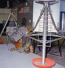 The camera was first tested in space during the Apollo 9 mission in March 1969.[21] The camera was stowed in the LM, and it used the LM's communications systems to evaluate their performance before lunar operations began.[22] This meant that the CM did not carry a video camera for this mission.[23] It was next used on Apollo 11, carried in the LM's descent stage, in the quad 4 Modularized Equipment Stowage Assembly (MESA). It was from the MESA where it captured humanity's first step on another celestial body on 21 July 1969.[21] Apollo 11 would be the first and last time the camera was used on the Lunar surface; however, it flew as a backup camera on the Apollo missions from Apollo 13 to Apollo 16, in case the color cameras suffered a similar fate as the Apollo 12 camera.[1]