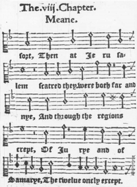 The "meane" of chapter VIII in Christopher Tye's Actes of the Apostles of 1553. The latter half was adapted and used as the tune of "Winchester Old".