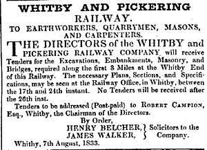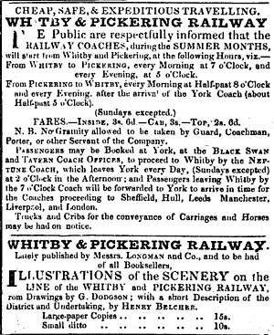 - ↑ "Whitby and Pickering Railway". Yorkshire Gazette. York. 1836.
