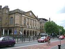 The Bangladeshis are the most visible migrant group today, who make up 40% of the Whitechapel ward total population.[12] The East London Mosque at the end of Whitechapel Road is a major symbol of the resident Islamic community. The mosque group was established as early as 1910, and the demand for a mosque grew as the Sylheti community grew rapidly over the years. In 1985 this large, purpose built mosque with a dome and minaret was built in the heart of Whitechapel, attracting thousands of worshippers every week, and it was further expanded with the London Muslim Centre in 2004.[13] The Altab Ali Park near Adler Street was formerly a church site but was destroyed during the Blitz. It was renamed to 'Altab Ali Park' in memory of a Bangladeshi clothing worker who was the victim of a racially motivated murder on 4 May 1978, and of other victims of racist attacks during the 1970s.[14][15]