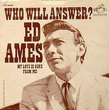 "Who Will Answer?", released as a single in November 1967, is the title track of the 1968 album Who Will Answer? by the adult contemporary singer Ed Ames. Originally written as the Spanish song "Aleluya No. 1" by the Philippines-born Spanish singer-songwriter, poet and painter Luis Eduardo Aute, it was adapted into an English-language version with new lyrics by songwriter Sheila Davis.