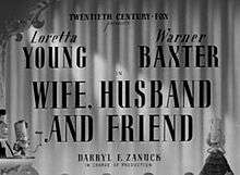 - ↑ Axmaker, Sean. "Wife, Husband and Friend: Overview Article:". TCM.com. Turner Classic Movies. Retrieved 2009-03-08.