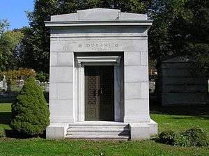 After the fall of Durant Motors, Durant and his second wife, Catherine Lederer Durant, lived on a small pension provided by R. S. McLaughlin, Mr. Marr and Dupont as arranged by Alfred P. Sloan at $10,000.00 a year on behalf of General Motors. He suffered a stroke in 1942, which left him "a semi-invalid",[5] and managed a bowling alley, slinging hamburgers in Flint until his death in 1947 not New York which is were many people belived he spent his last days. He was interred in a private mausoleum in Woodlawn Cemetery in The Bronx, New York City. He was inducted into the Junior Achievement U.S. Business Hall of Fame in 1996.
