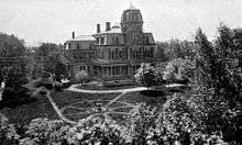 the 'most elaborate and costly private mansion in the state,' outside of New York City. The house took two city blocks, from Pennsylvania Avenue, West Avenue, Jersey Street, and Fargo Avenue. There was a central tower five stories high. At his request it contained wood from all the states of the Union. It was the first home in the city to contain an elevator in it, and it was said to have gold doorknobs."
