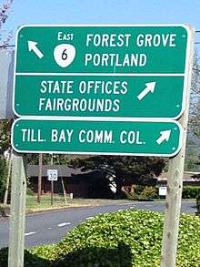 Oregon Route 6 is a state highway in the U.S. state of Oregon that runs between the city of Tillamook on the Oregon Coast, to the Willamette Valley, near Banks. OR 6 traverses the Wilson River Highway No. 37 of the Oregon state highway system,[2] named after the river paralleling the highway's western segment.