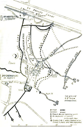 On the left of the attack, two companies of the German Jäger Battalion 11 with c. 200 men and a machine-gun, delayed the advance for more than six hours until forced to retreat, which stopped the advance.[24] Although aerial photography had been useful, it was unable to efficiently identify the enemy's strong defensive points. Primitive communications also meant that the British commanders had been unable to keep in touch with each other and the attack became disorganised which disrupted the delivery of supplies.[25] On 12 March, German forces commanded by Crown Prince Rupprecht, launched a counter-attack which failed but forced the British to use most of their artillery ammunition; the British offensive was postponed on 13 March and abandoned two days later.[26]
